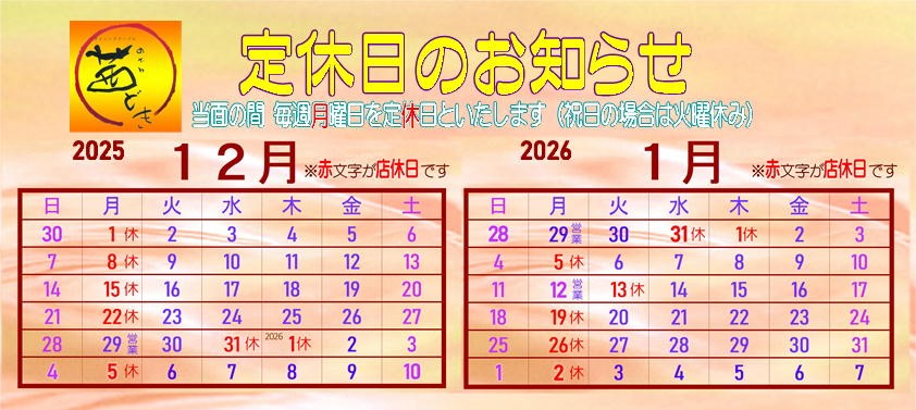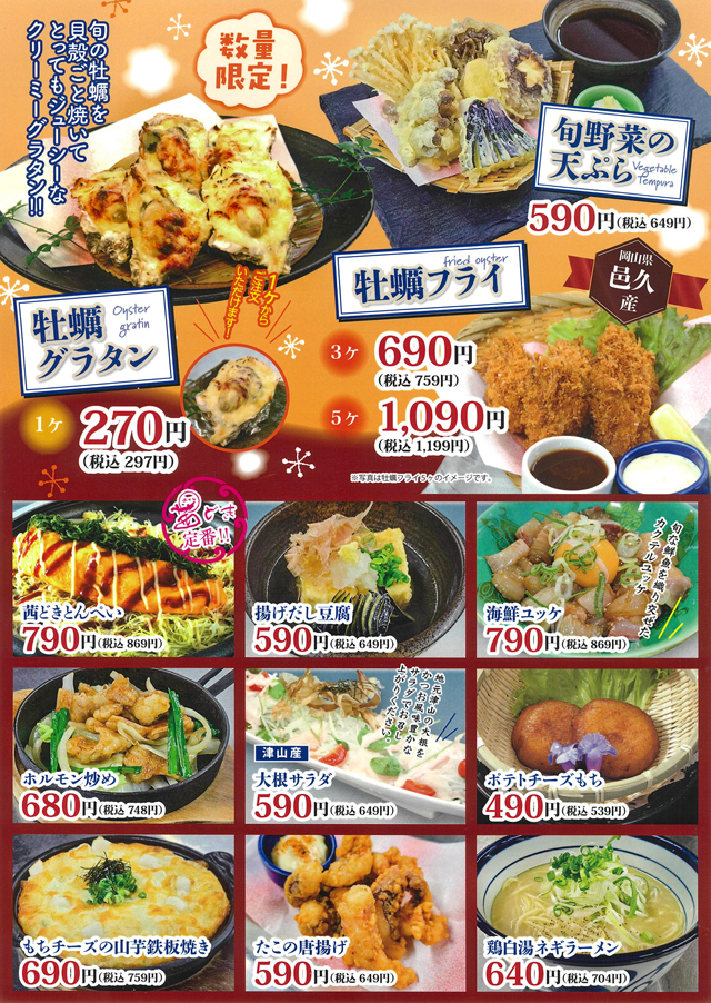 季節メニュー 12/2~1/13 ※期間内でも予告なく終了することがあります