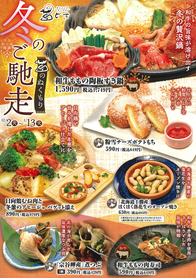 季節メニュー 12/2~1/13 ※期間内でも予告なく終了することがあります