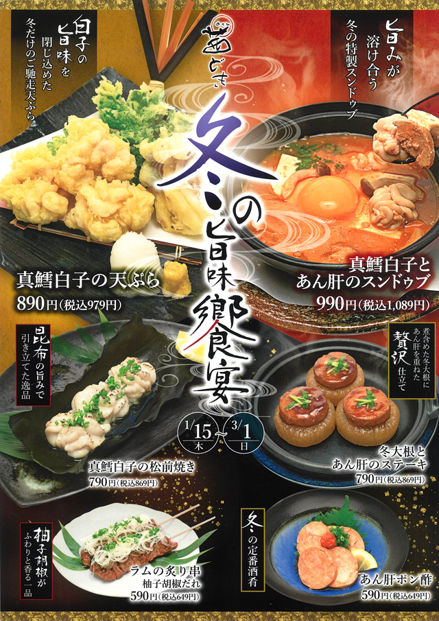 季節メニュー 1/15~3/1 ※期間内でも予告なく終了することがあります